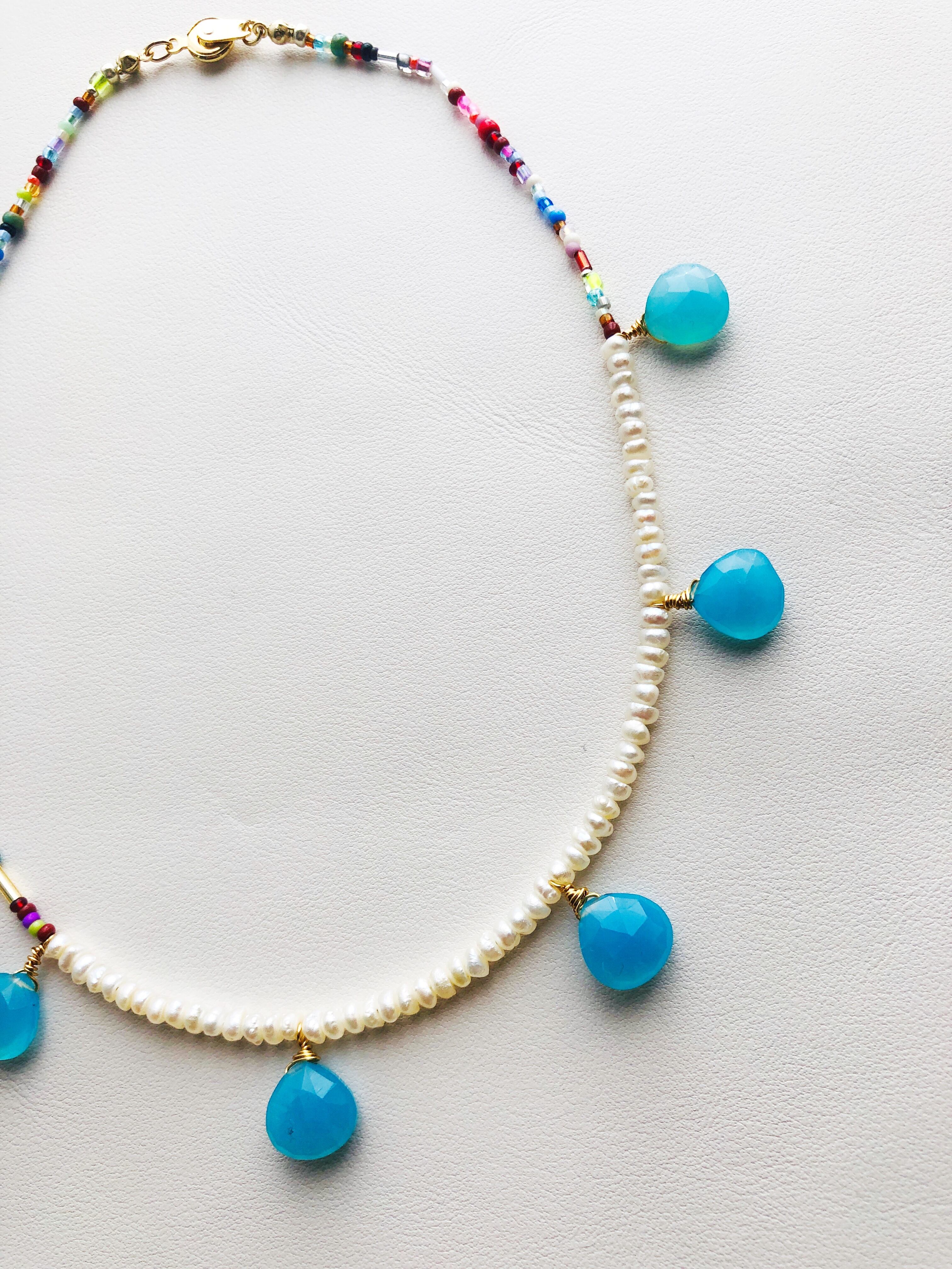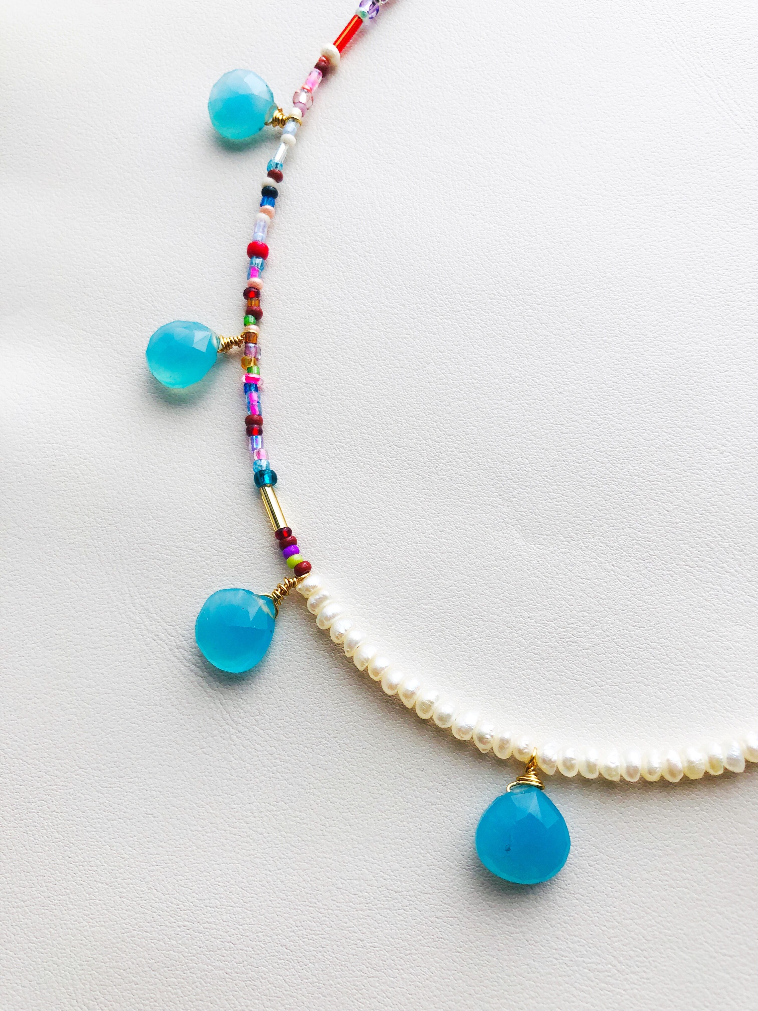 淡水パールとビーズをミックスして作ったネックレス。