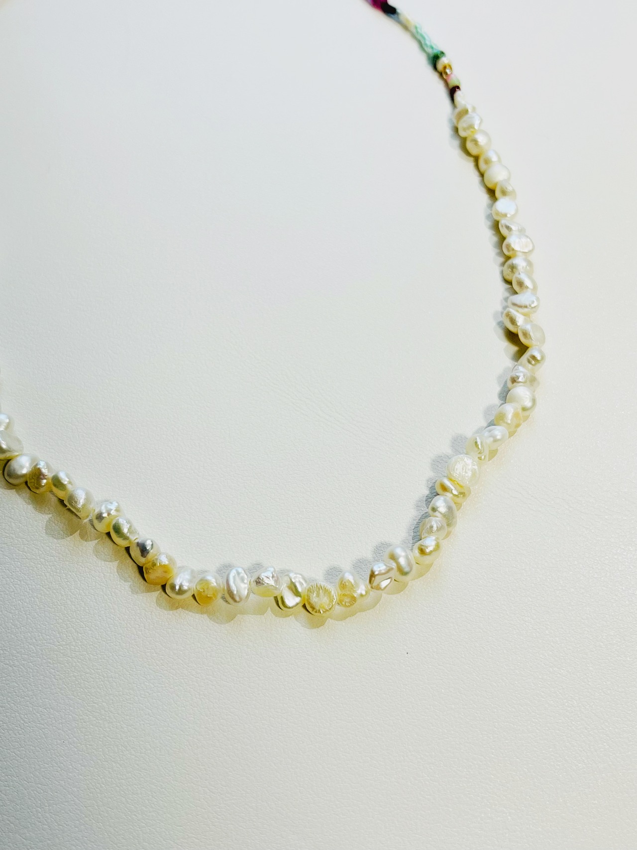 糸を使うことで、しなやかで首にそい、つけ心地が良いです。