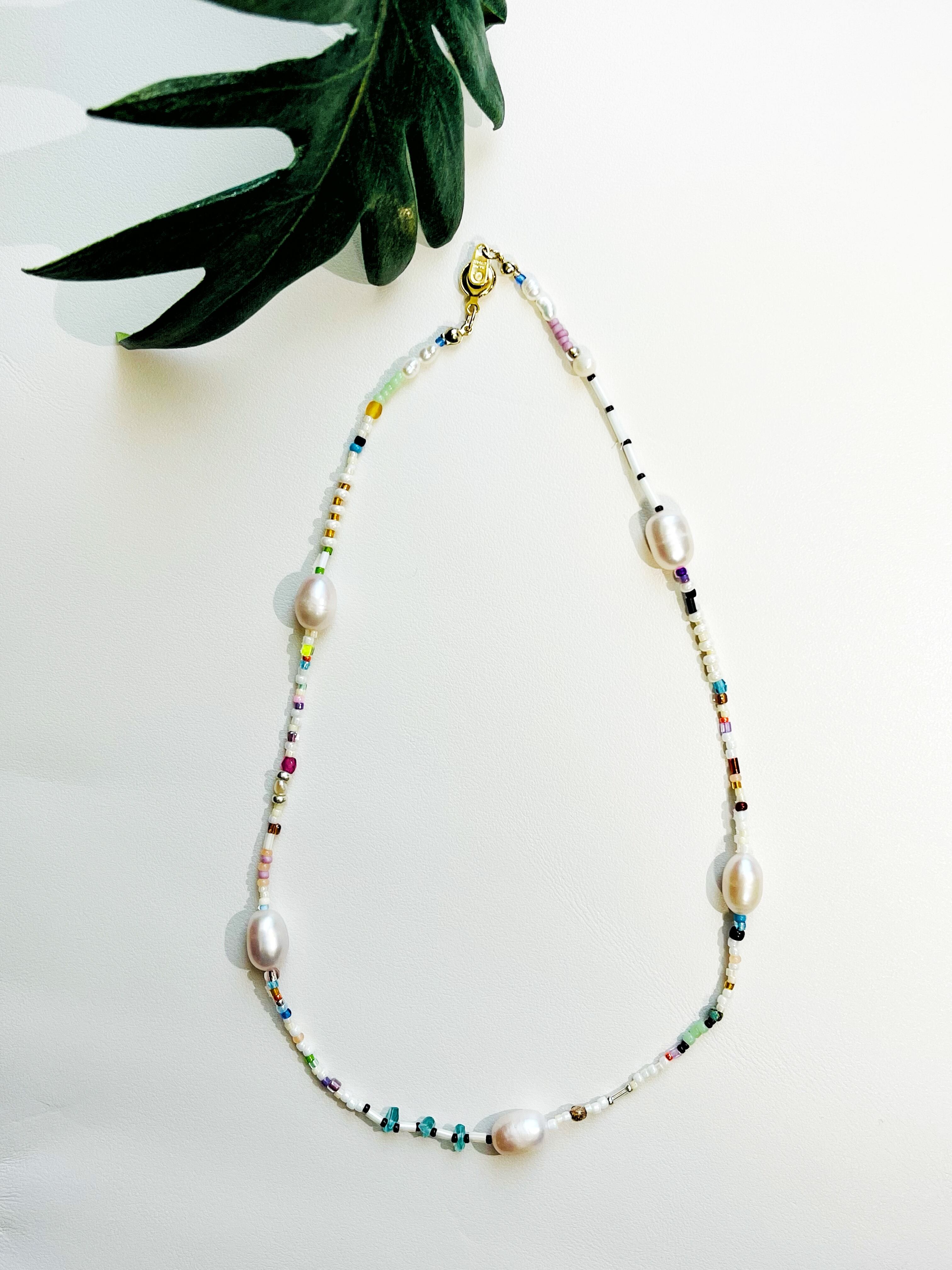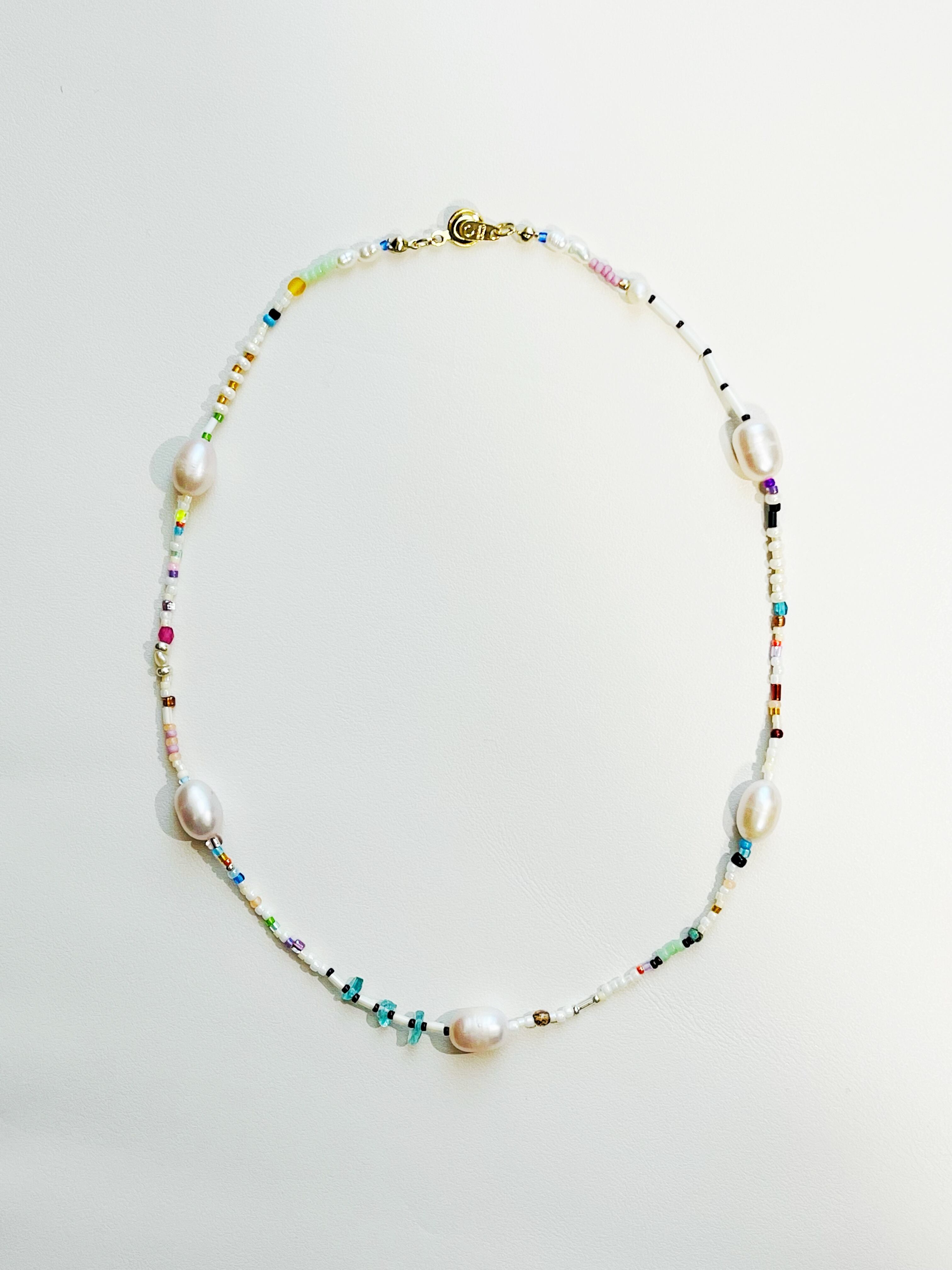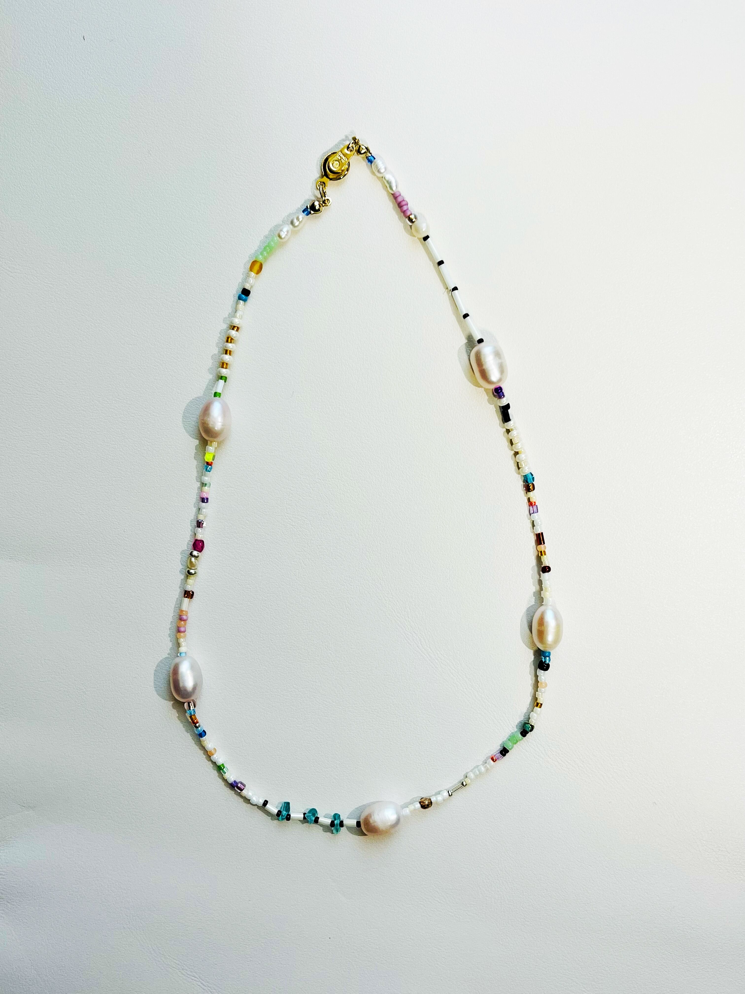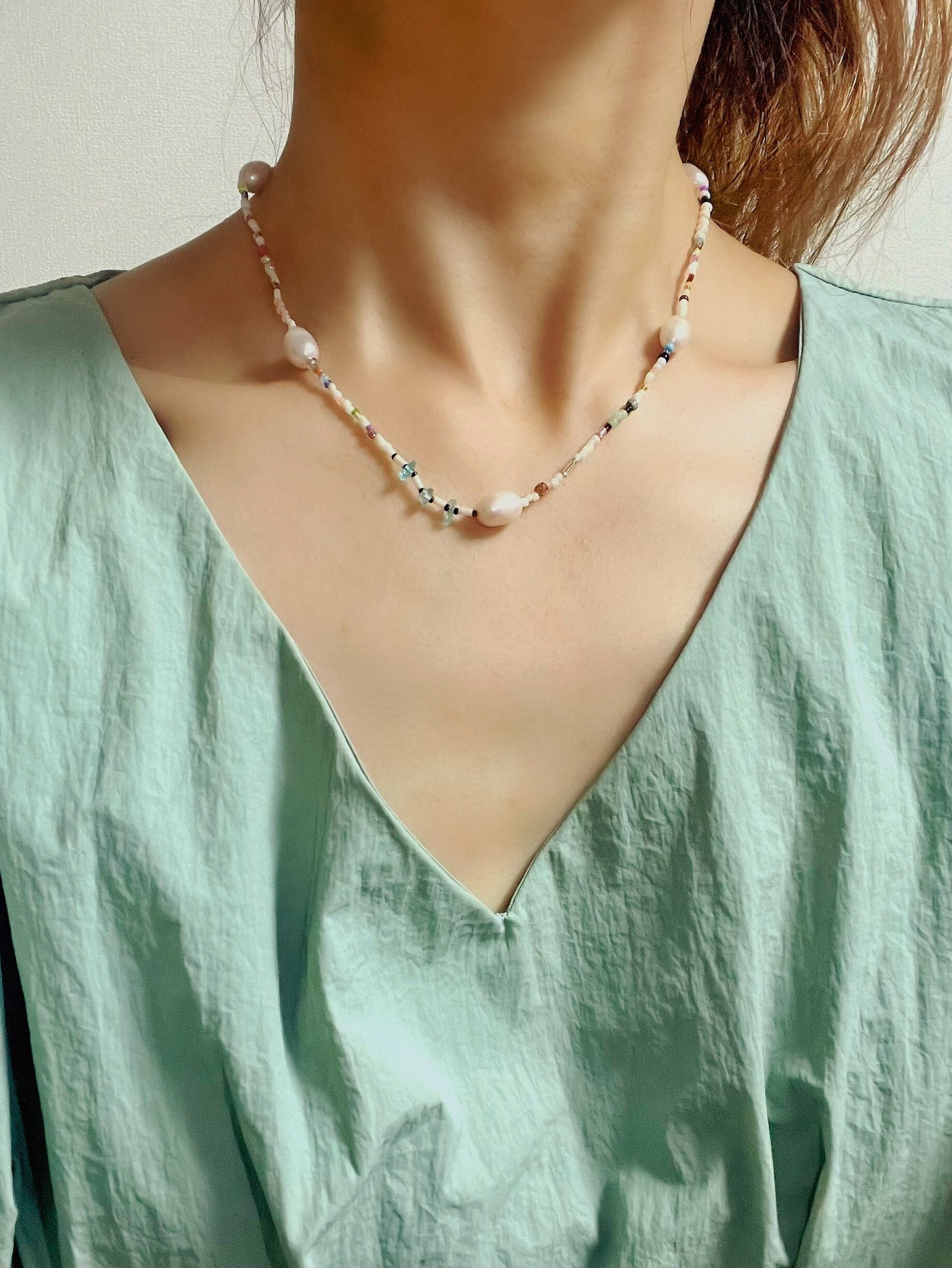 パール mix ビーズ パライバトルマリン ネックレス