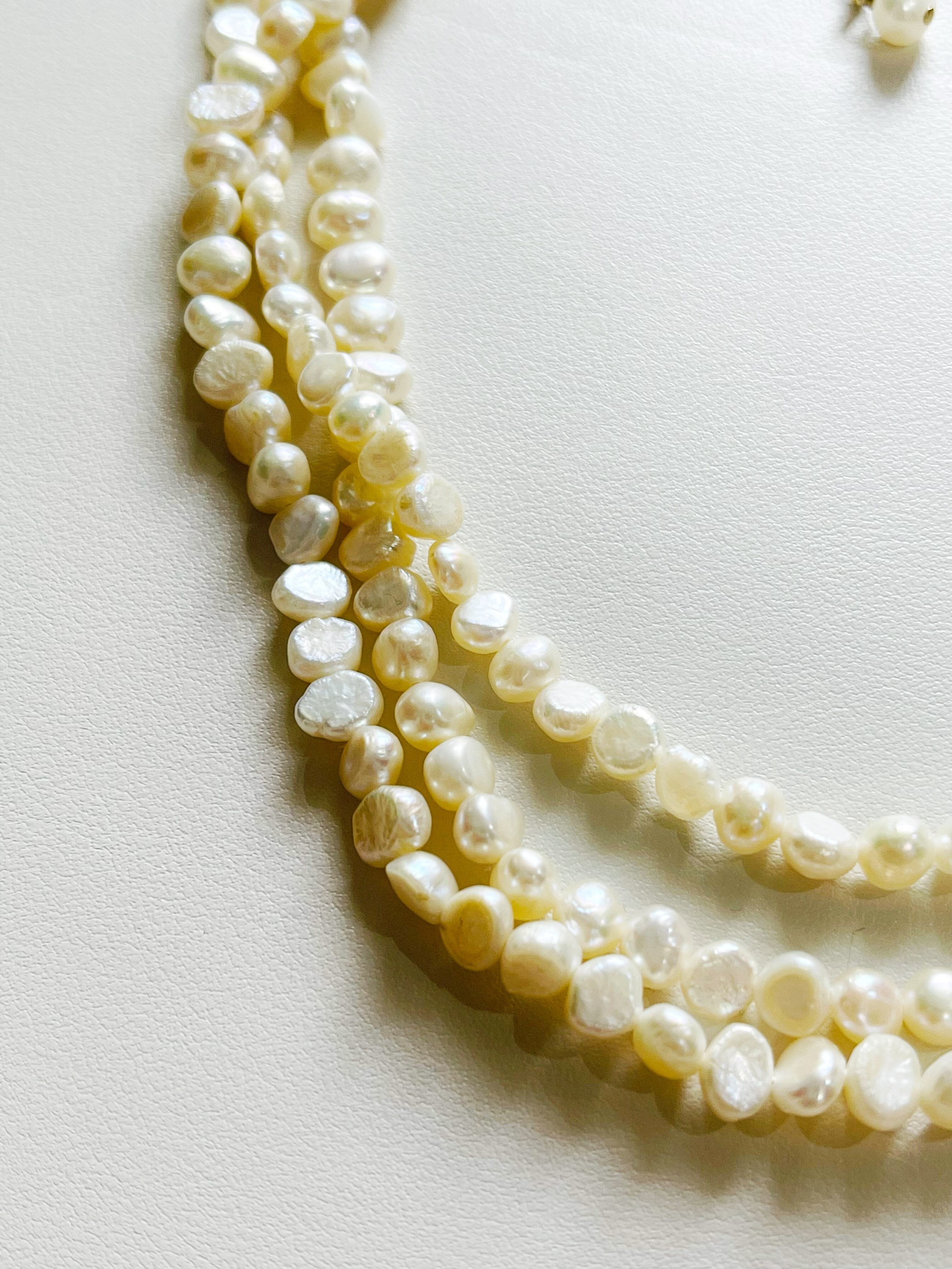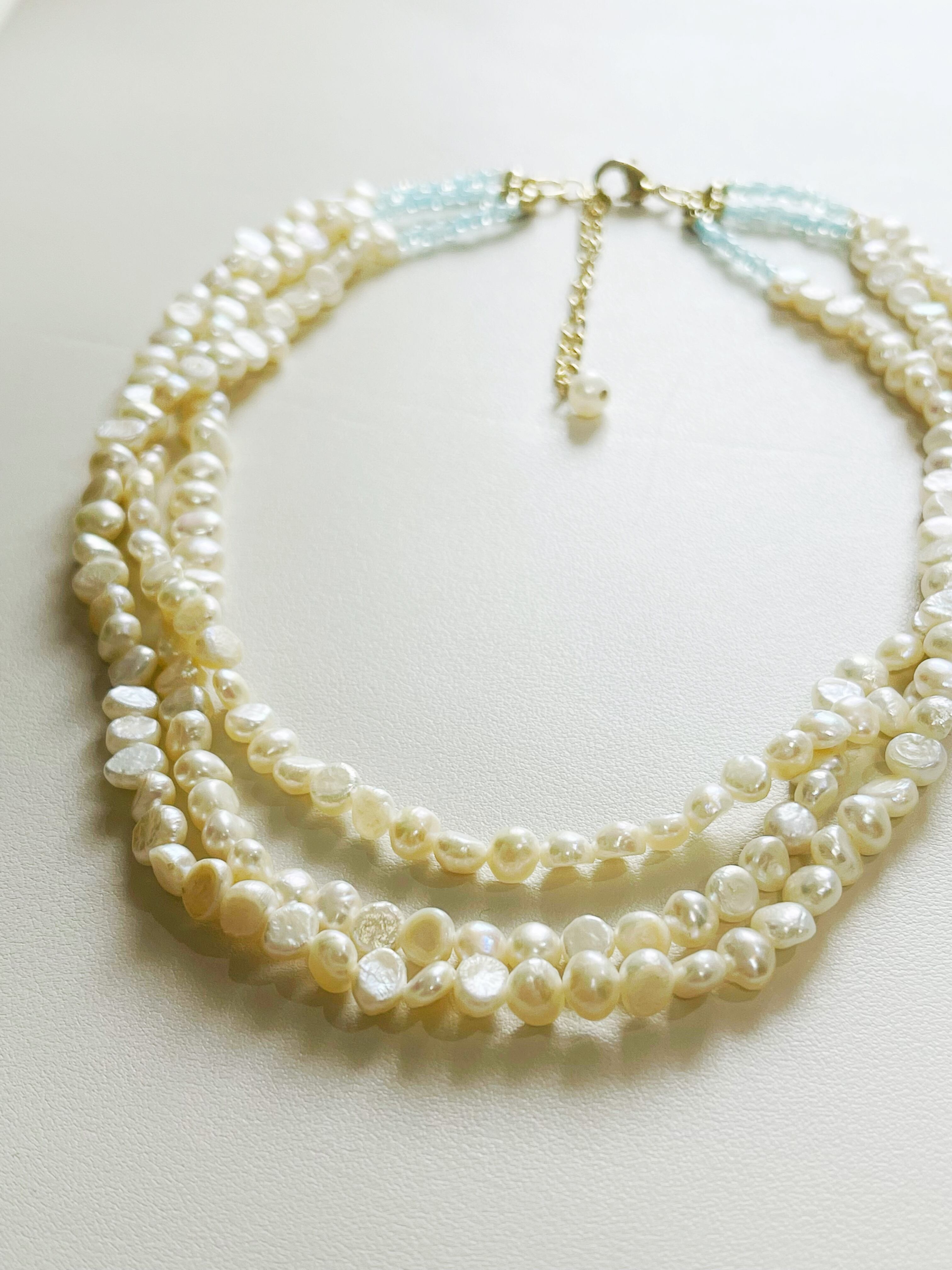 3連パール mix ビーズネックレス
