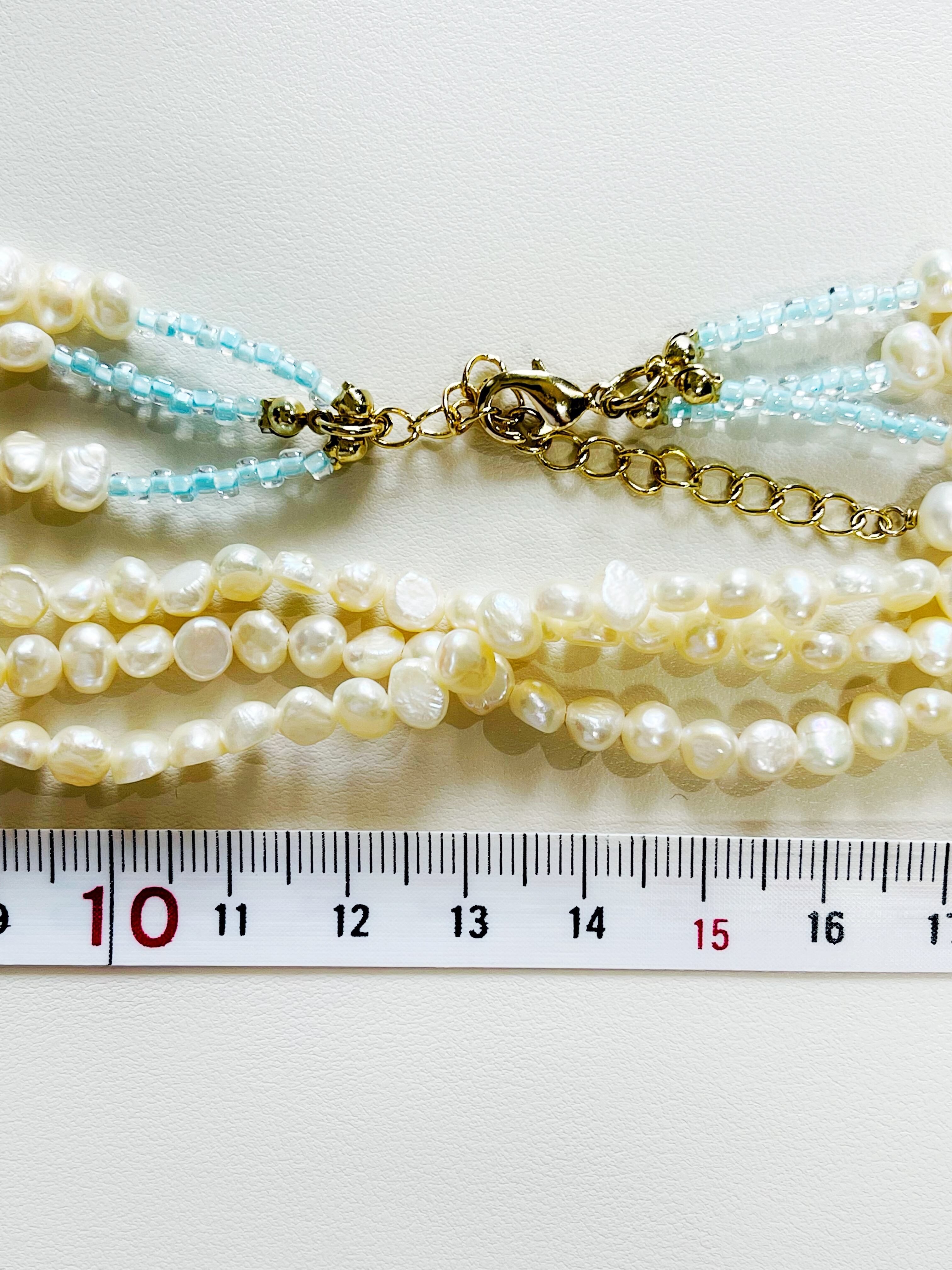 水色のビーズとパールの色合いが清楚で上品な印象。