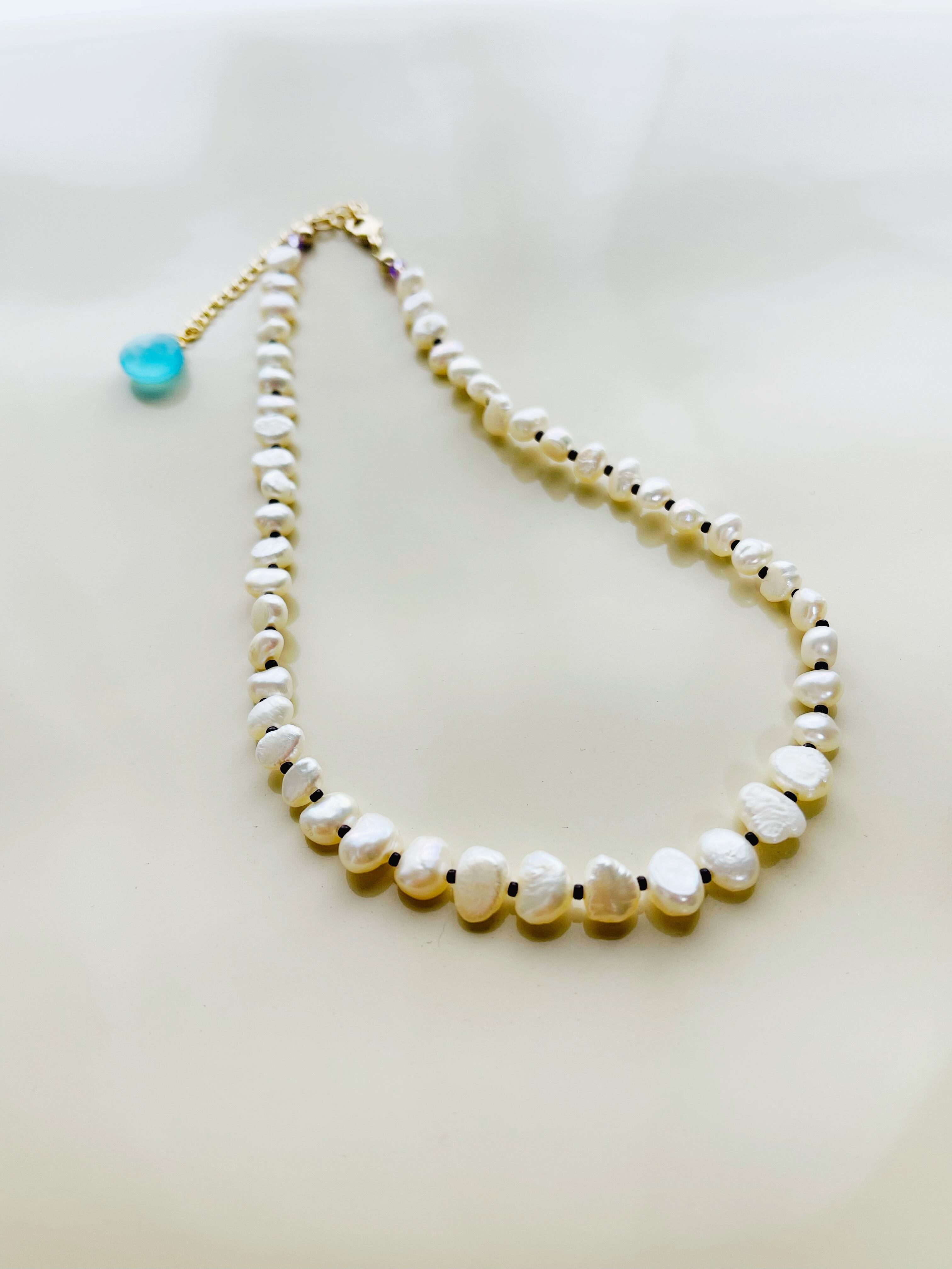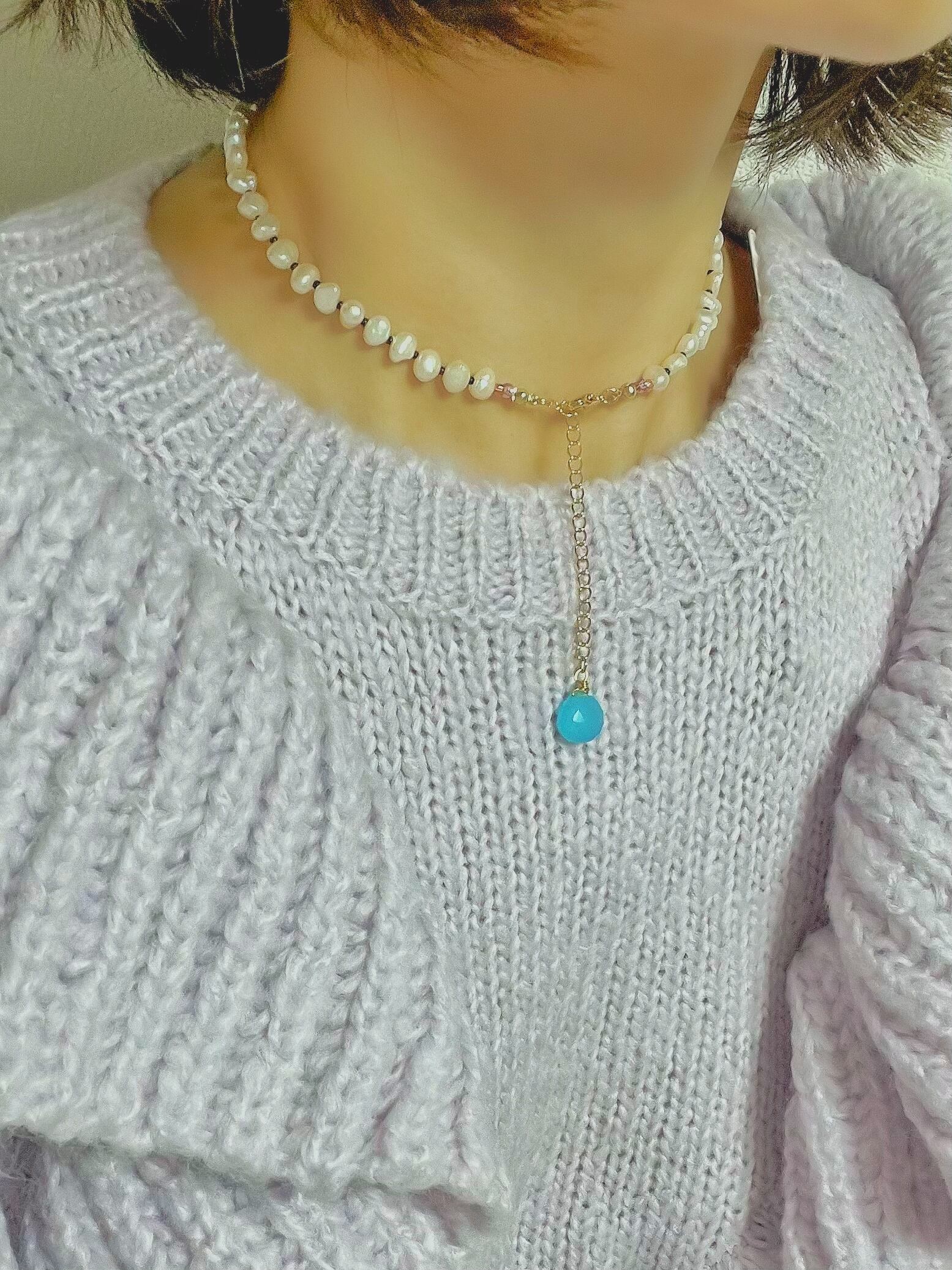 パールmixビーズネックレス カルセドニー